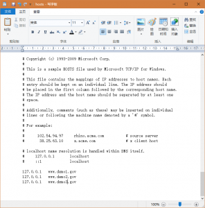 然后在最下面加入一行代码,即可将这个莫须有的域名解析到本地,可以以此类推添加其他域名: