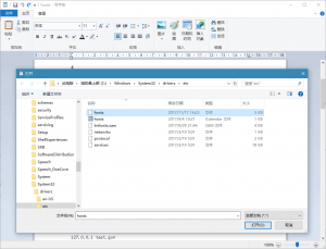 注意右下方要选择全部文档才能看到hosts文件,如图: