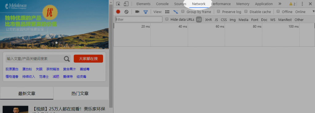 在Chrome浏览器中打开之前准备好要采集的网站列表页,按F12调出开发者工具,然后切换到Network选项卡。